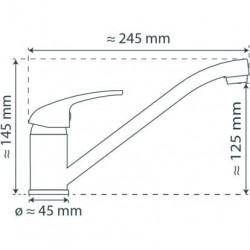 • Bec verseur orientable à 360 • Cartouche céramique de 35 mm silencieuse et interchangeable • Tuyaux de raccordement flexibles d'environ 400 mm • Buse mélangeuse de marque pour un jet parfait • Dimensions : (L x H x P) env. 45 x 115 x 235 mm